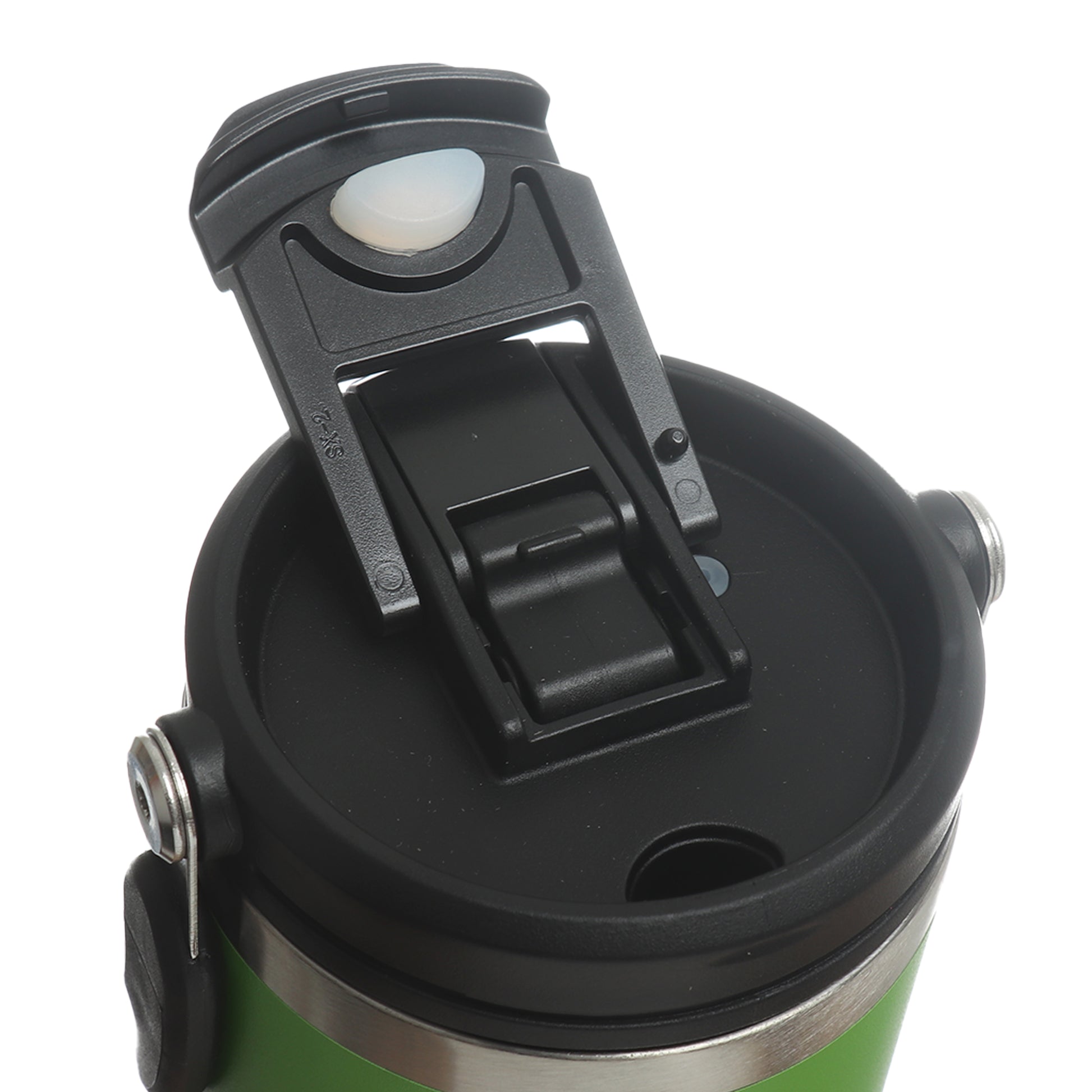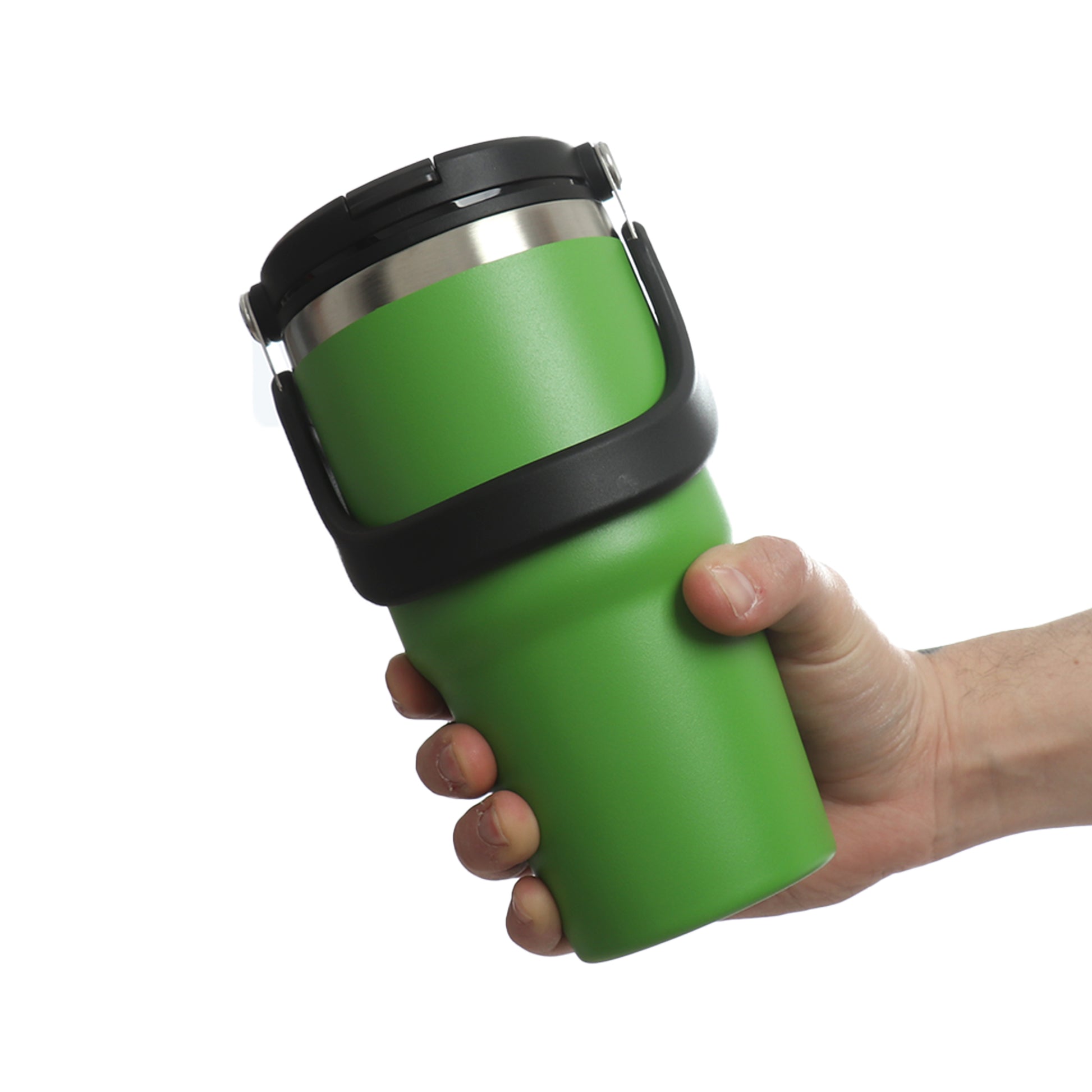 Cuenta con tapa 2 en 1 antiderrame y de popote, como también incluye una agarradera para mayor comodidad de transportarlo, sin tener miedo a que se te derrame.